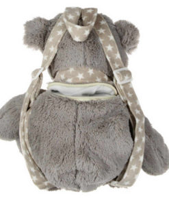 De rugzak is gemaakt van zeer zachte stof en heeft uitsluitend vastgenaaide details, zoals ogen en neus. Er zijn geen harde of scherpe onderdelen aanwezig, waardoor het product veilig is voor jonge kinderen. Aan de achterkant bevindt zich een rits die toegang geeft tot één praktisch rugzakcompartiment. Het opbergvak aan de achterkant heeft een inhoud van ongeveer 1 liter en biedt voldoende ruimte voor kleine dagelijkse spulletjes, zoals een beker, fruit of een favoriet speeltje.